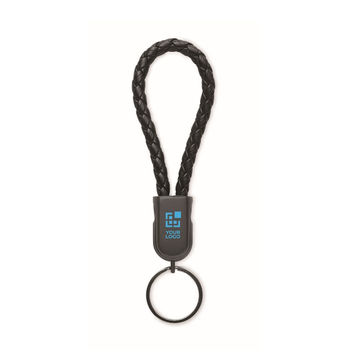 Porte-clés noir tressé avec câble de recharge et de données 60W