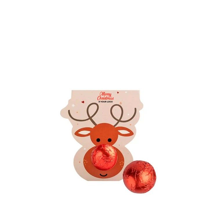 Bonbon chocolat noisettes avec support renne, cadeau festif personnalisé