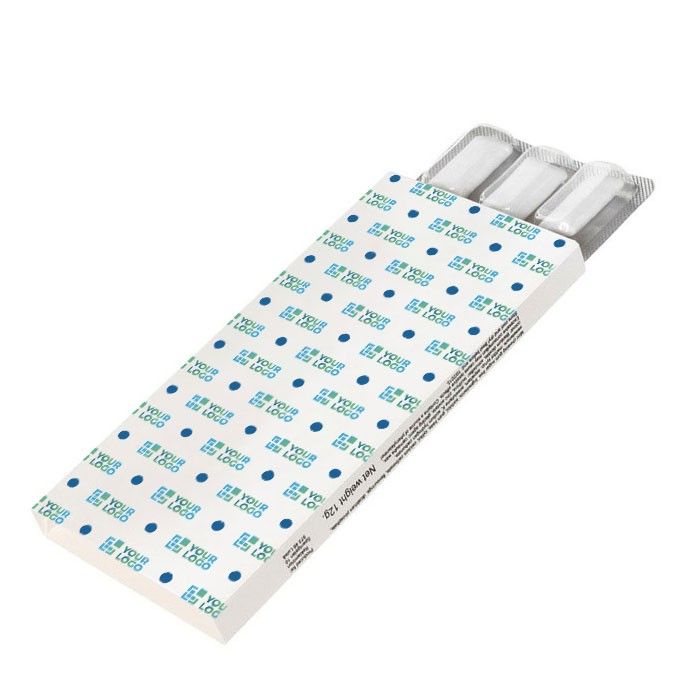 - Pratique et léger : étui de 12 chewing-gums, idéal à offrir lors d'événements ou salons professionnels.