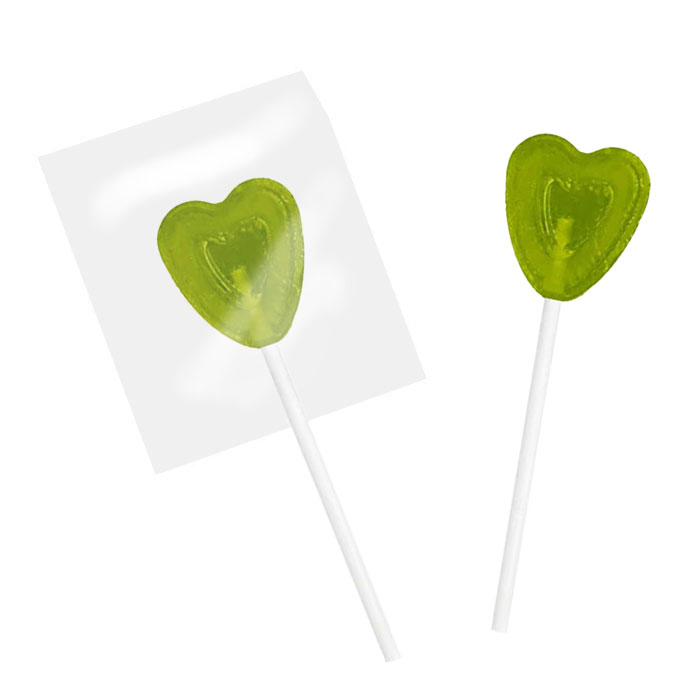 7 grammes de petite sucette plate en forme de cœur avec des arômes de fruits : fraise, pomme, orange, citron, cerise, framboise, framboise acide, menthe, cola. Bâton en papier.