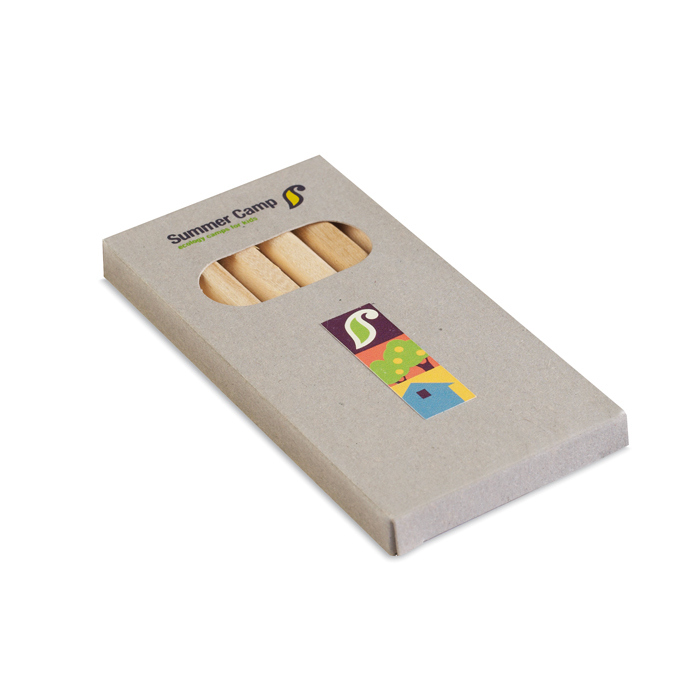 Un étui de crayons de couleur, simple et fonctionnel, est une excellente option pour assurer la visibilité de votre marque dans des environnements fréquentés par les familles. Distribué dans les écoles, restaurants ou centres de loisirs, il offre une activité constructive aux enfants, contribuant à leur divertissement. Ce geste positionne votre entreprise comme attentive aux besoins de sa communauté, renforçant une image positive et bienveillante. C'est une stratégie efficace pour intégrer votre marque au quotidien des familles, créant une reconnaissance et une sympathie durables. Boîte en carton avec 6 crayons de couleur. Dimensions : 45 x 90 x 9 mm.
