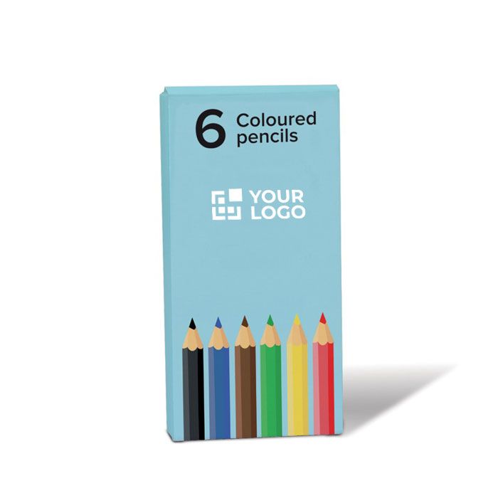 6 crayons de couleur en bois dans une boîte personnalisable.