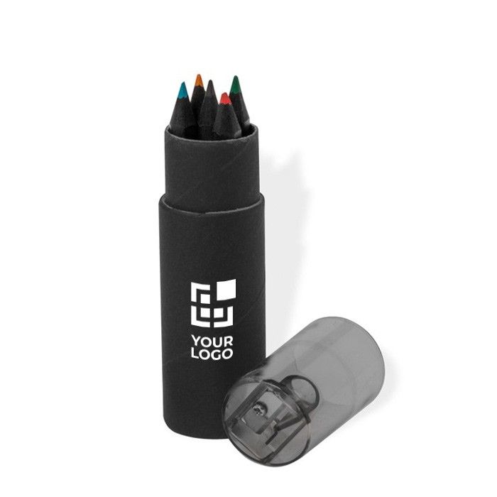 Set de 6 crayons en bois noir dans un étui avec taille-crayon