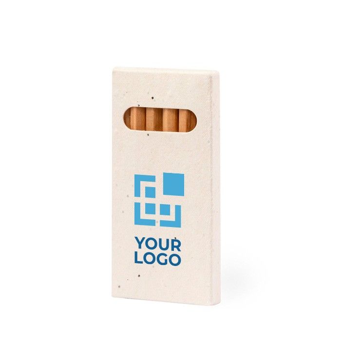 - Boîte compacte comprenant 6 crayons de couleur et des graines de pétunia pour un cadeau d'entreprise durable et créatif.