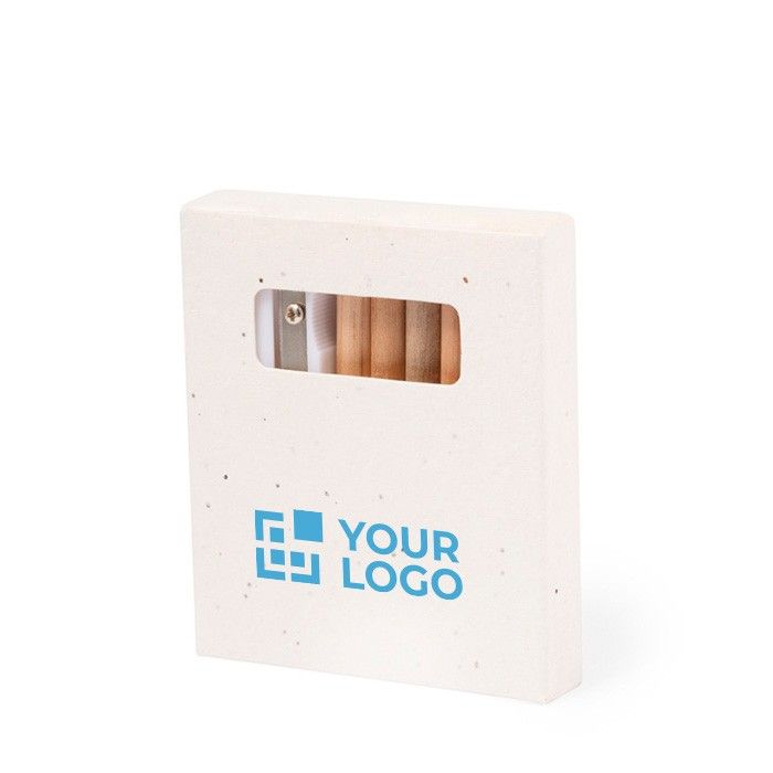 - Set complet de 6 crayons de couleur avec taille-crayon intégré, présenté dans une boîte à graines originale.