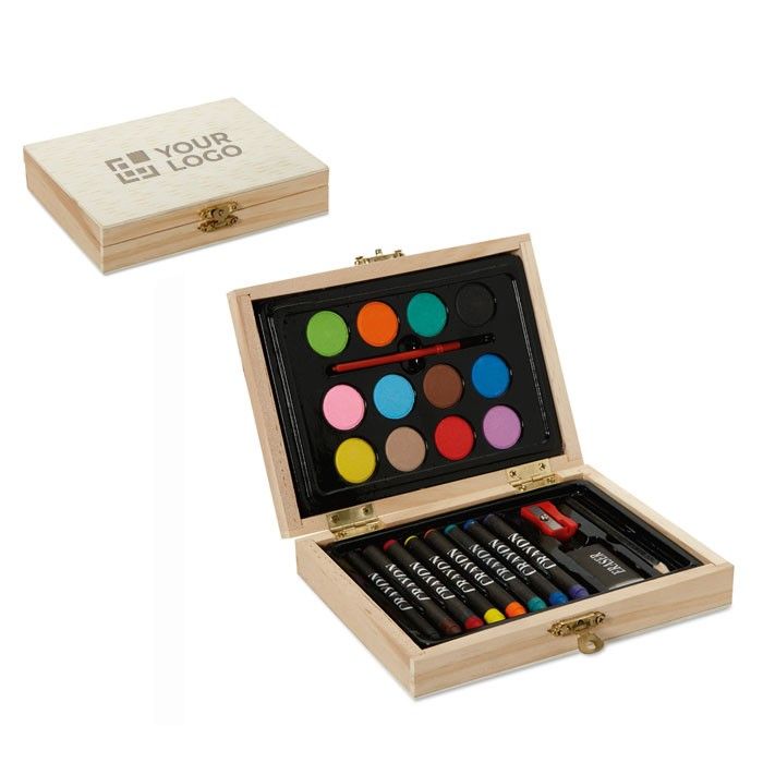 Set créatif en bois pour enfants avec crayons et aquarelle