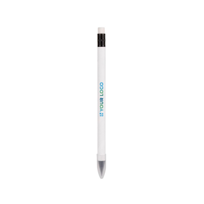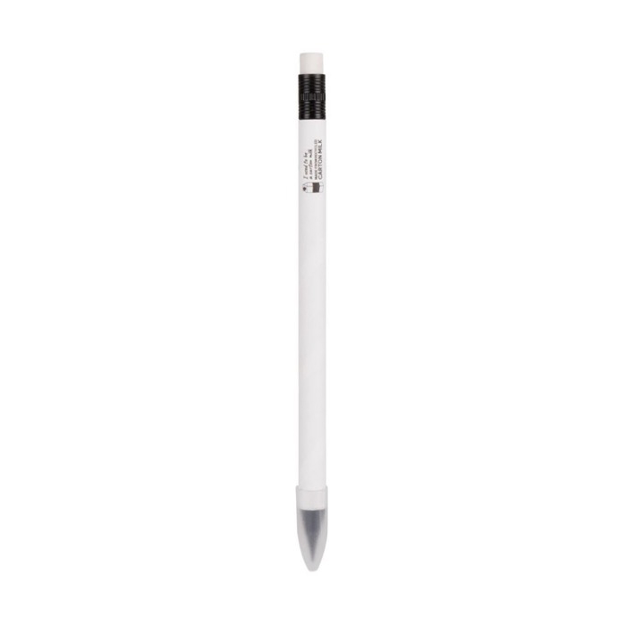 Crayon publicitaire éternel fabriqué à partir de cartons de lait recyclés. Écriture infinie avec gomme à effacer intégrée. Un cadeau créatif et écologique.