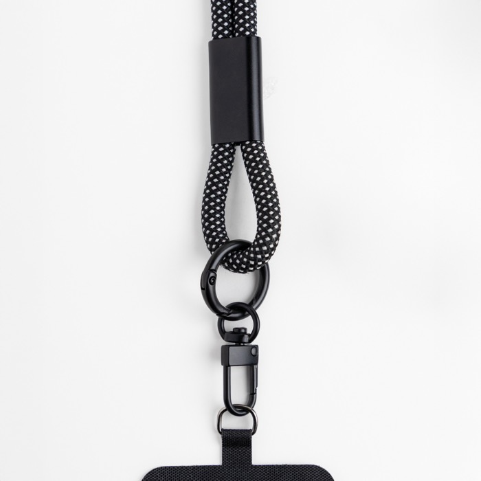 Lanyard avec charge rapide USB-C, tissu robuste et attaches ajustables. Maintenez vos appareils sécurisés et accessibles avec la praticité du mains libres.