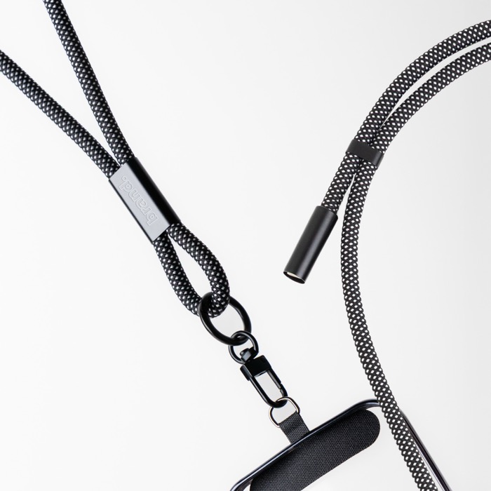 Lanière en plastique et nylon avec charge et attaches pour téléphone