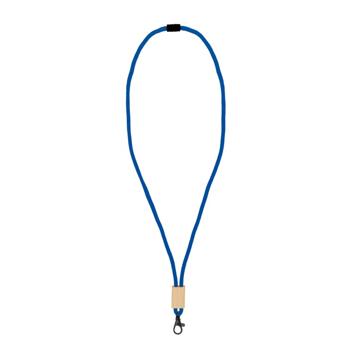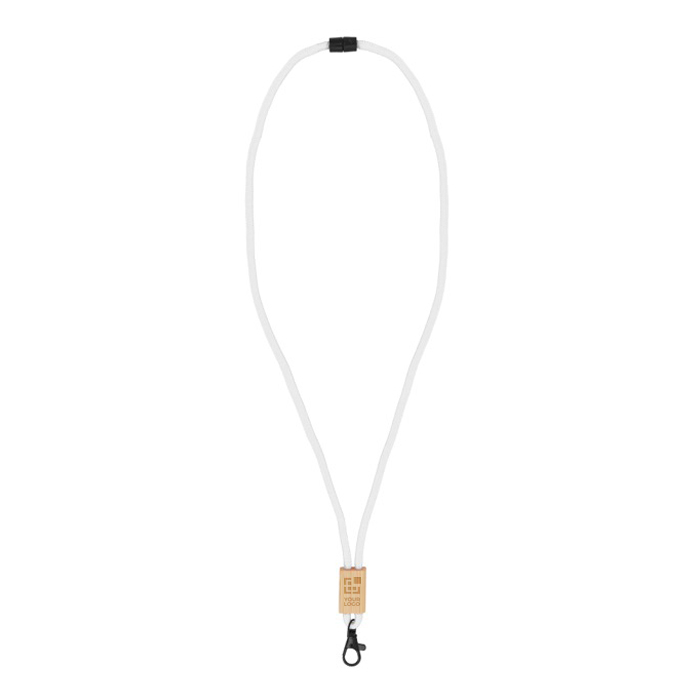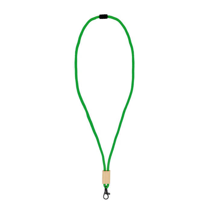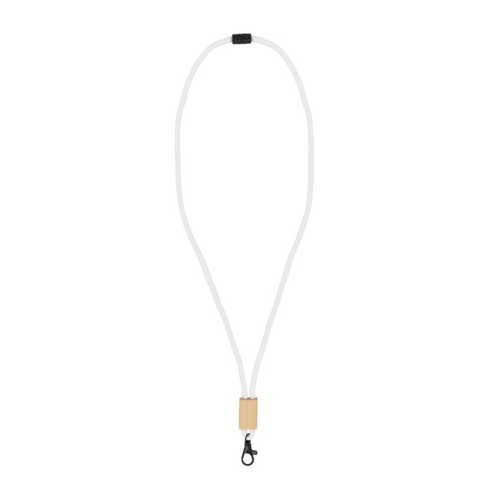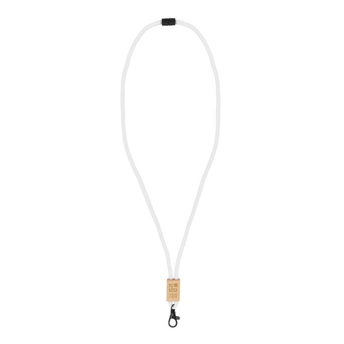 Lanière RPET colorée avec détail bambou, pratique et écologique.