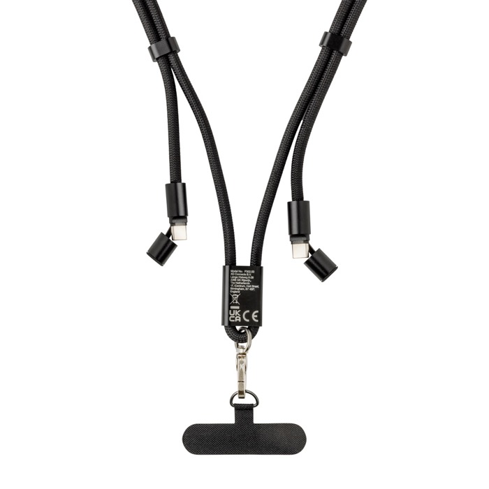 Tour de cou pour téléphone en RPET avec USB‑C et charge 60W