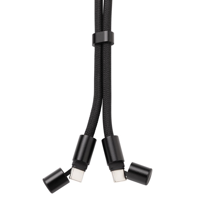 - Dragonne en RPET avec câble USB-C intégré pour charge rapide 60W, idéale pour les déplacements professionnels.