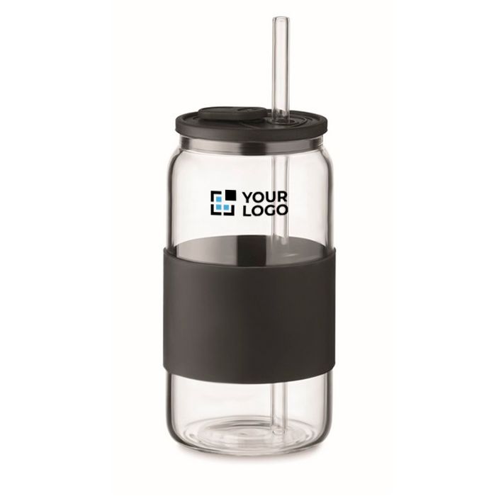 Verre borosilicate 550ml élégant, paille et bande silicone assorties.