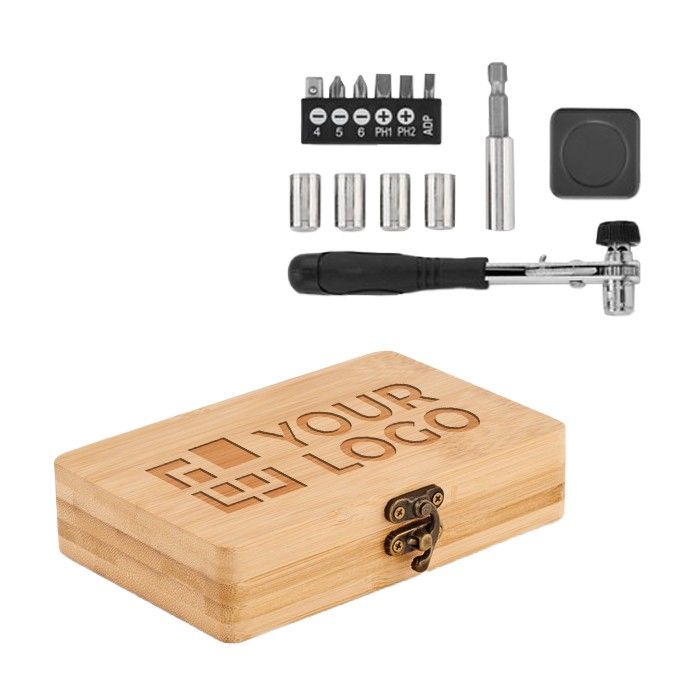 Ensemble de 13 outils dans un élégant coffret en bambou