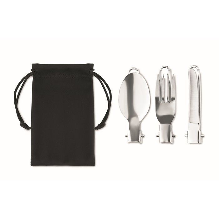 Lot de 3 couverts promotionnels pliants dans une pochette Camping