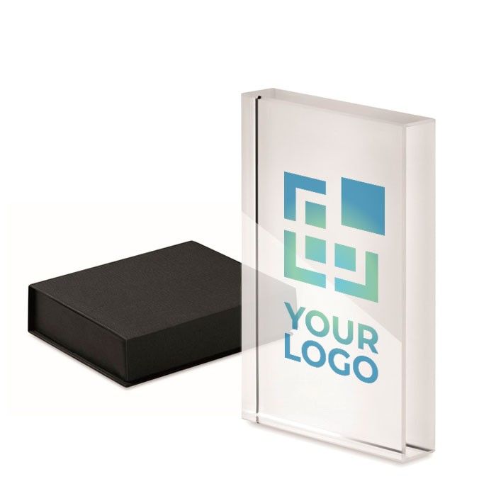 Trophée en verre personnalisé, présenté dans un élégant coffret.