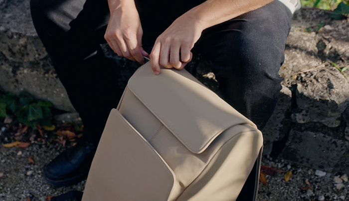Ce sac à dos de 20 litres est fabriqué en PU recyclé. Il dispose d'un compartiment supérieur, d'un compartiment frontal et d'une pochette rembourrée pour ordinateur portable au dos, tous accessibles séparément. Deux poches latérales et des bretelles rembourrées contribuent à son confort.