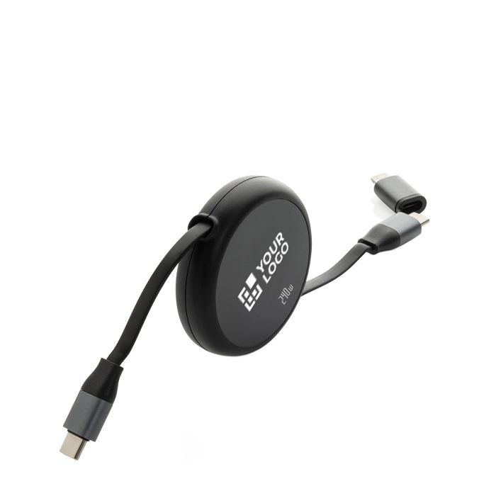 Câble rétractable 2 en 1 en aluminium recyclé, charge et données 240 W