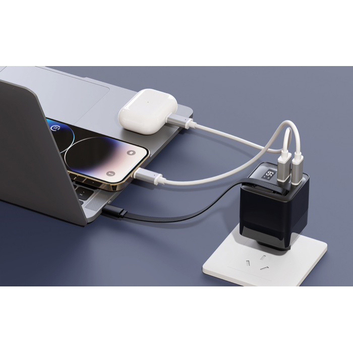 Chargeur rapide GaN écologique avec câble rétractable de 80 cm 65W
