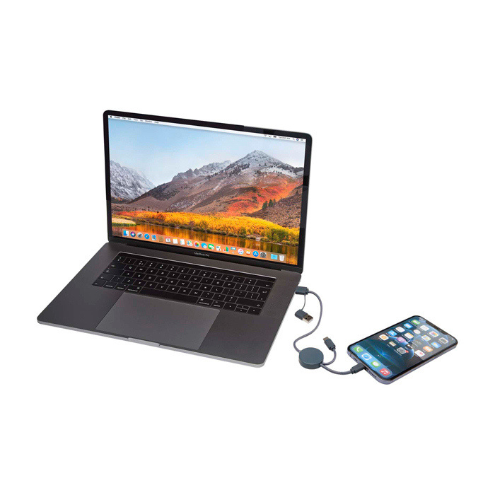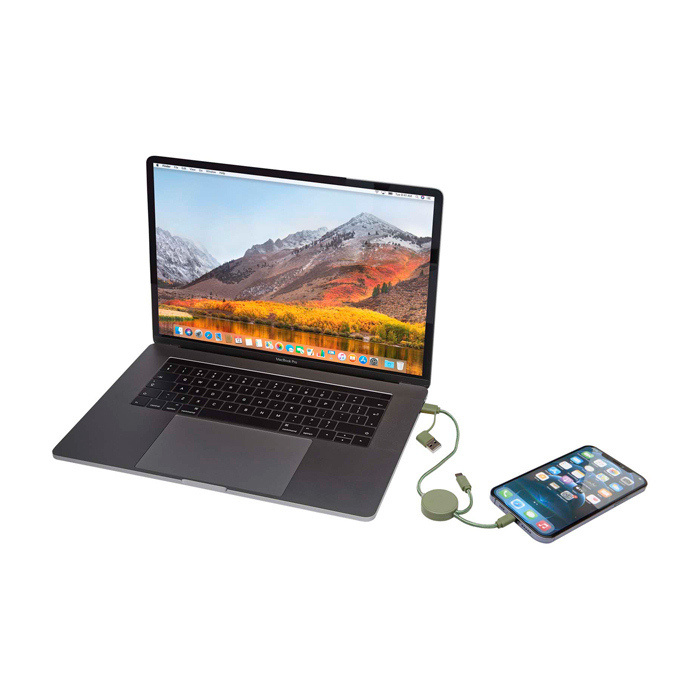 Un câble de charge rapide, conçu en plastique recyclé, offre une solution moderne et écologique pour la connectivité professionnelle. Le câble 5-en-1 de synchronisation des données et de charge rapide 27 W Citala est fabriqué à partir de plastique recyclé. Ses multiples connecteurs assurent une compatibilité étendue, avec des connecteurs d’entrée USB-A et Type-C combinés à un connecteur de sortie Type-C et combi Lightning/Micro USB, permettant la charge rapide et la synchronisation des données pour divers appareils, partout et à tout moment. L’USB-A vers l'USB-C fournit une puissance de sortie maximale de 27 W. Toutes les autres options de connexion offrent une puissance maximale de 15 W. Cet objet pratique simplifie le quotidien des collaborateurs et clients, réduisant l'encombrement des câbles. Compatible avec CarPlay et Android Auto. Que vous soyez à la maison, au bureau ou en déplacement, le câble Citala offre performance et style dans un ensemble compact. Longueur du câble : 30 cm. Offrir un tel produit renforce l'image de votre marque comme étant innovante, soucieuse de l'environnement et attentive aux besoins technologiques de ses partenaires.