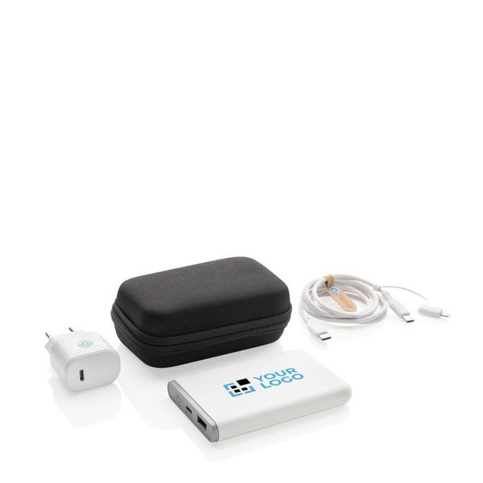 Kit de charge 3 pièces en plastique recyclé avec powerbank 5 000 mAh