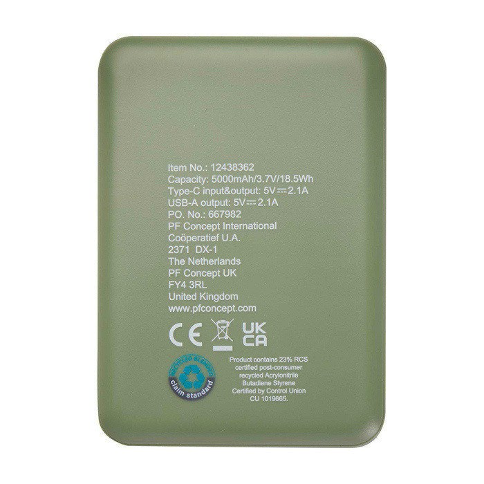 Batterie externe en plastique recyclé fine et élégante 5 000 mAh