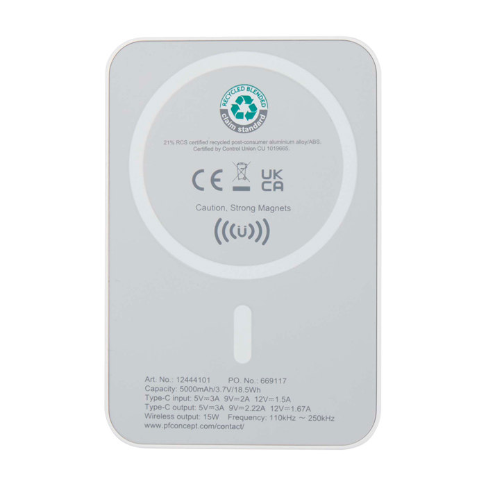 Batterie externe magnétique sans fil en plastique recyclé 5 000 mAh