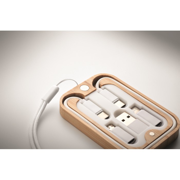 Une boîte en bambou intégrant une fonction de chargeur sans fil de 15W représente une solution de recharge élégante et organisée. Son boîtier en bambou avec fermeture magnétique et sangle, accompagné d'un câble 3-en-1, permet de recharger divers appareils rapidement et de manière ordonnée. Le câble inclut des connecteurs Type-C vers Type-C, Type-C vers USB-A, et Type-C vers micro-B. Ce dispositif est idéal pour les professionnels qui apprécient la discrétion et l'efficacité. En offrant cet accessoire, les entreprises associent leur marque à l'innovation, à la durabilité et à l'organisation. Il devient un objet distinctif qui soutient la productivité et reflète une image d'entreprise raffinée et pratique.