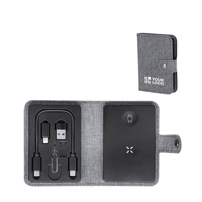 - Combine un étui compact en polyester 300D RPET et une base de charge sans fil pour vos appareils mobiles.