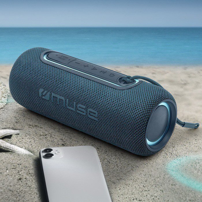 Haut-parleur sans fil résistant à l'eau (IPX5) avec détails LED, pour profiter de la musique à l'intérieur comme à l'extérieur. L'enceinte offre un son cristallin avec une puissance maximale de 20W. La batterie a une grande capacité de 3000mAh et peut être rechargée rapidement avec la connexion USB-C. Équipé d'une fonction mains libres pour faciliter les conversations téléphoniques.