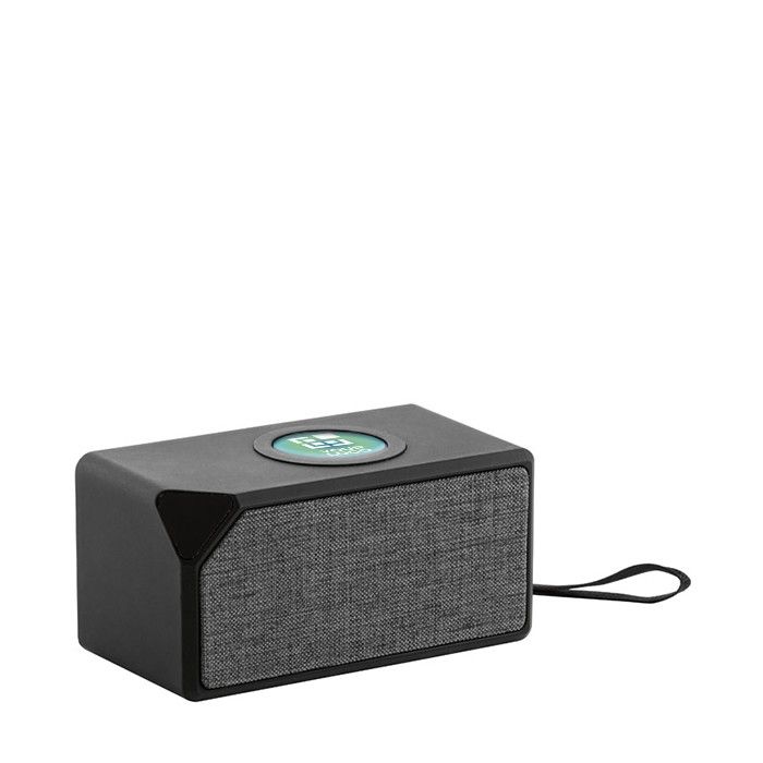 Haut-parleur portable avec logo et chargeur livré dans une boîte Fancy