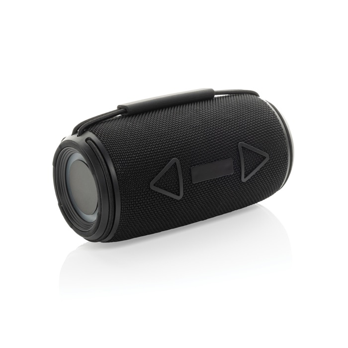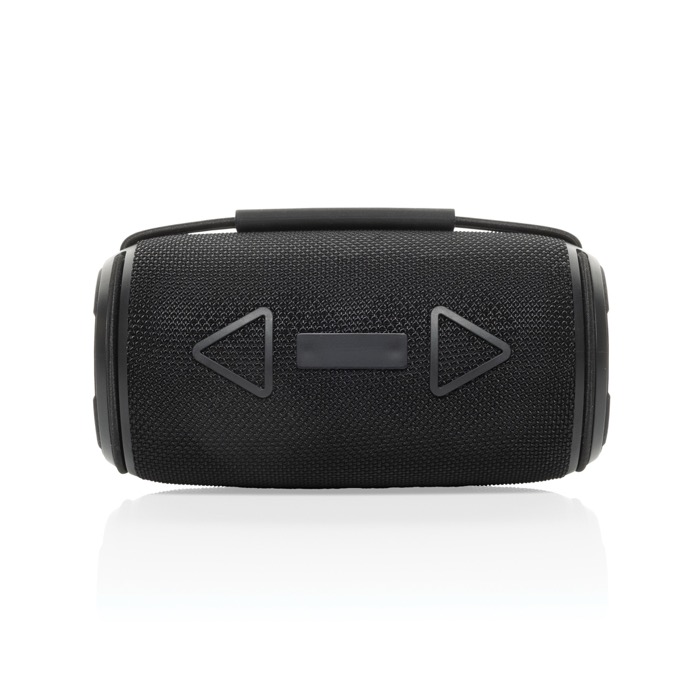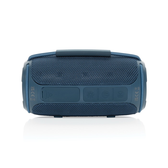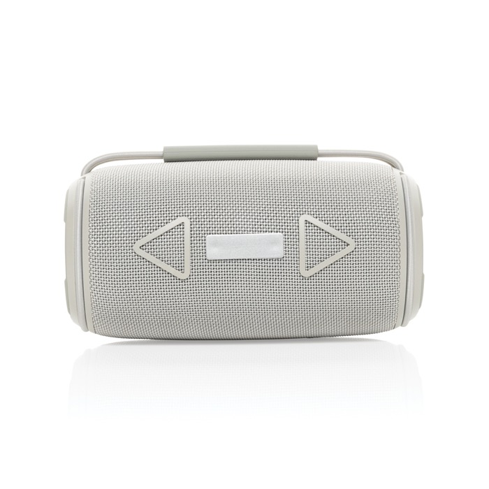 Enceinte de 16W fabriquée en plastique ABS recyclé certifié RCS et tissu RPET, combinant performances audio exceptionnelles, durabilité et impact environnemental réduit. Sa sortie puissante de 16W avec doubles subwoofers offre des basses profondes et un son clair pour une expérience immersive. Étanchéité IPX4 adaptée à une utilisation en extérieur. Sa poignée intégrée et sa batterie lithium-ion de 1500 mAh assurent une portabilité optimale avec jusqu’à 7 heures d’écoute à 50 % du volume. Technologie Bluetooth 5.3 pour une connexion fluide et un appairage automatique. Inclut microphone et fonction de prise d’appel, idéal pour les conversations mains libres. Teneur en matière recyclée : 37 % du poids total. Sans PVC, présentée dans une boîte kraft.