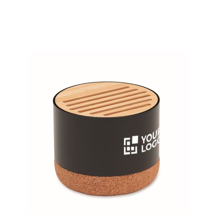 Haut-parleur circulaire sans fil à base en liège et détail en bambou