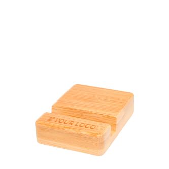 Support en bambou ergonomique, idéal pour téléphones professionnels personnalisés.