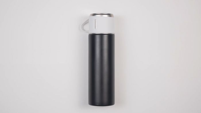 Bouteille isotherme élégante en acier inoxydable à double paroi.