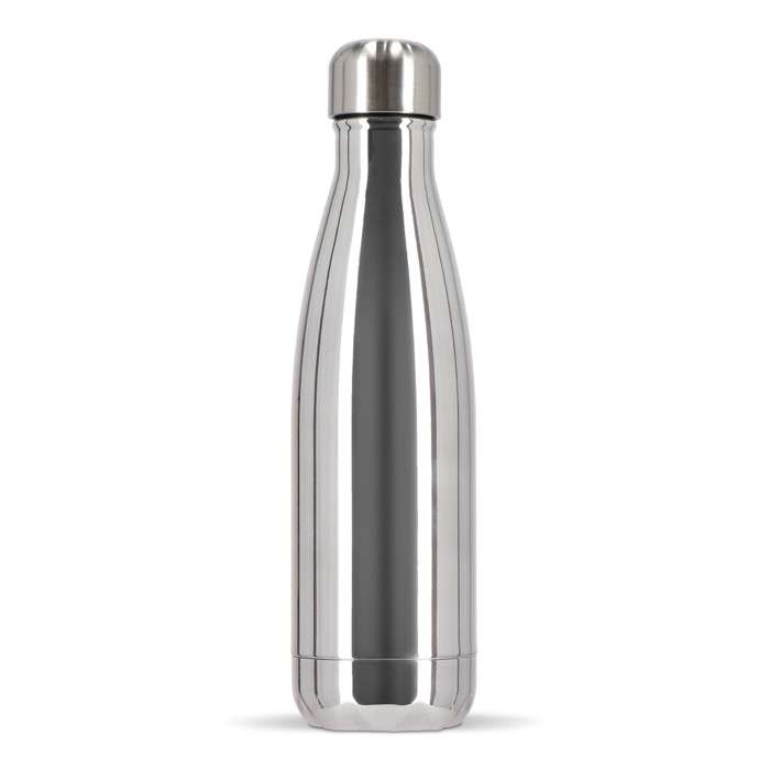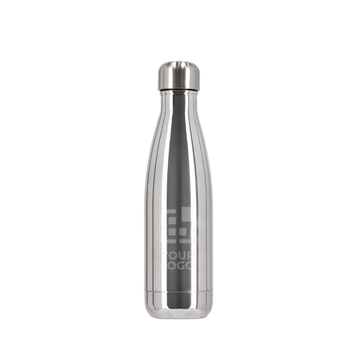 Faites briller votre marque avec cette bouteille isotherme chromée et élégante, gardant vos boissons froides 24 h ou chaudes 12 h sans condensation.