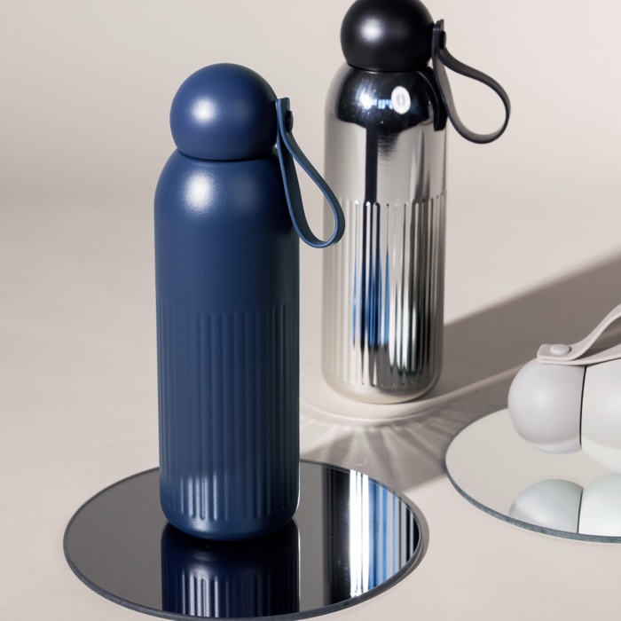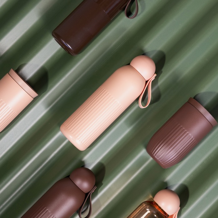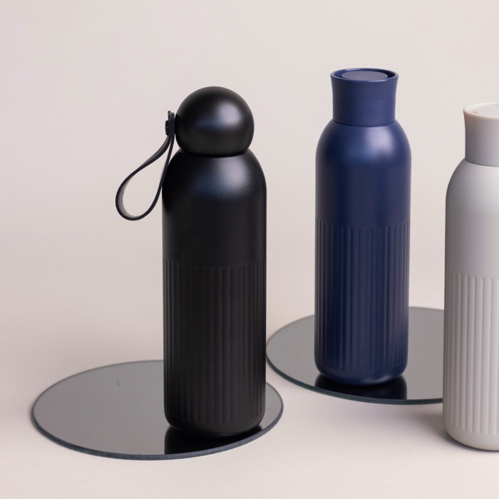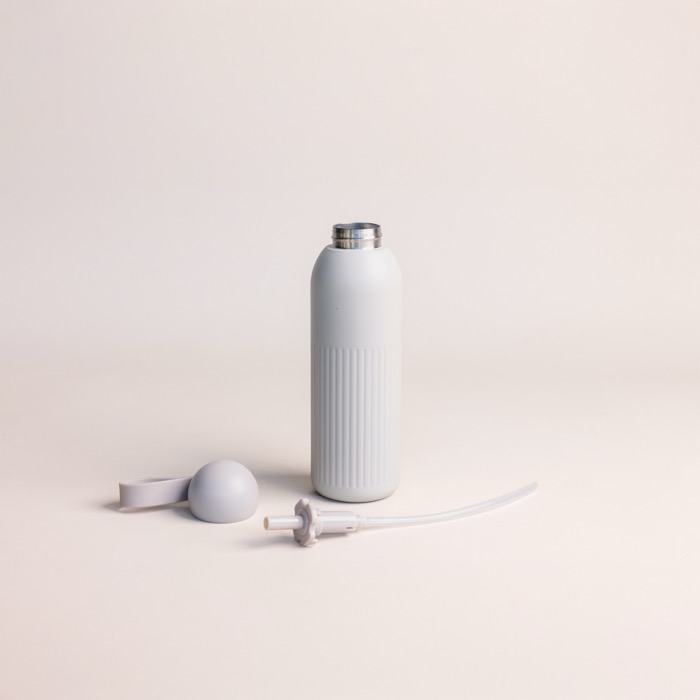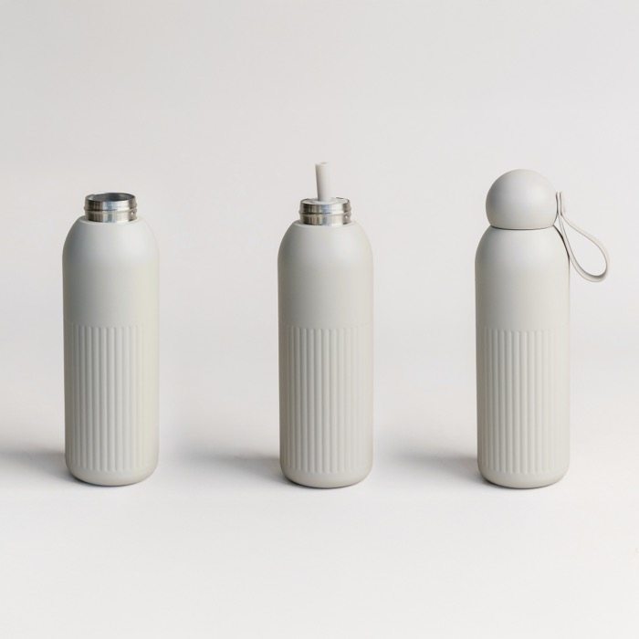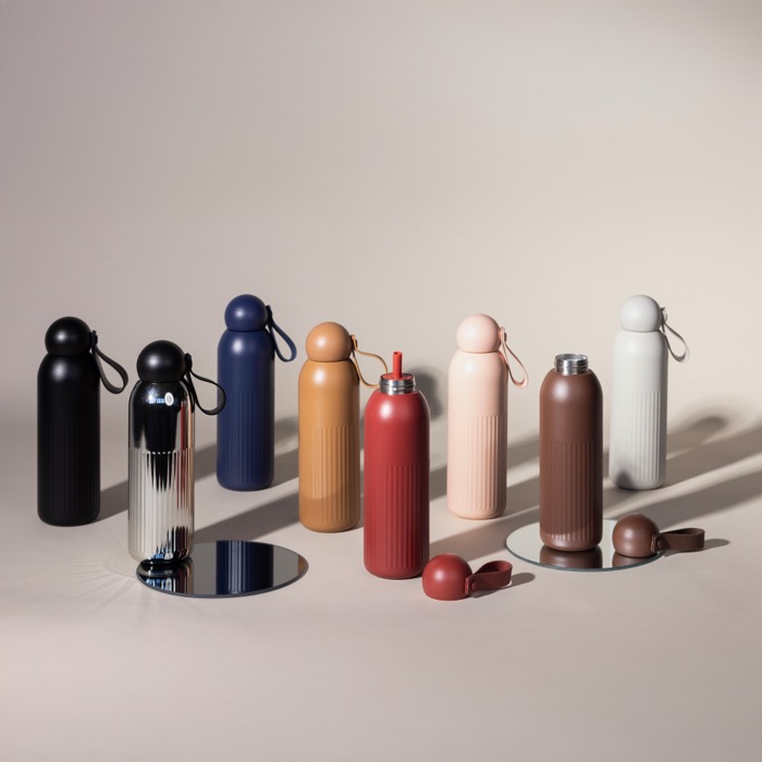 La gourde est de design scandinave et usage quotidien. Fabriquée en acier recyclé avec isolation sous vide et revêtement en cuivre : maintient boissons chaudes 12h ou froides 24h sans condensation. Rayures verticales, bouchon rond en plastique recyclé et paille amovible. Compatible lave-vaisselle.