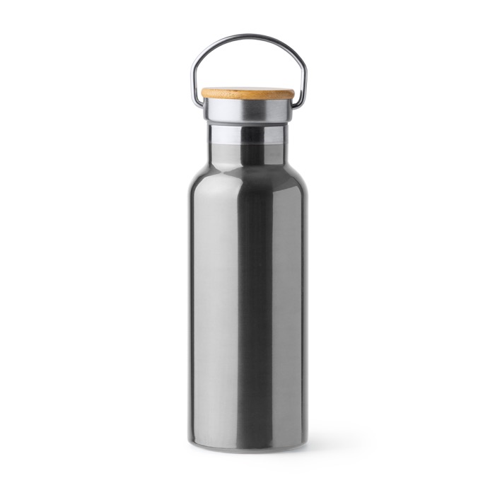 Bouteille en inox avec couvercle en bambou et anse pliable 500ml