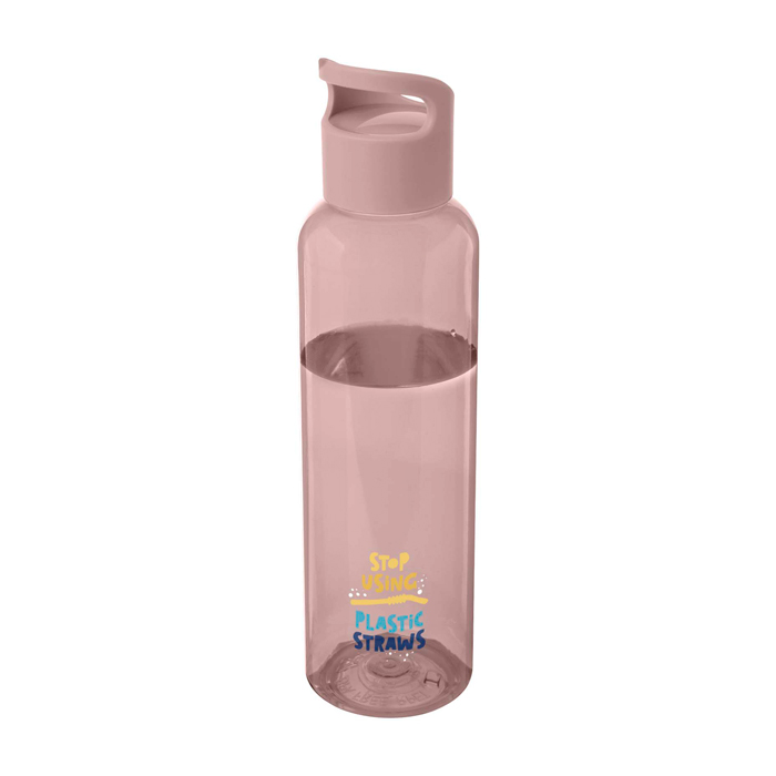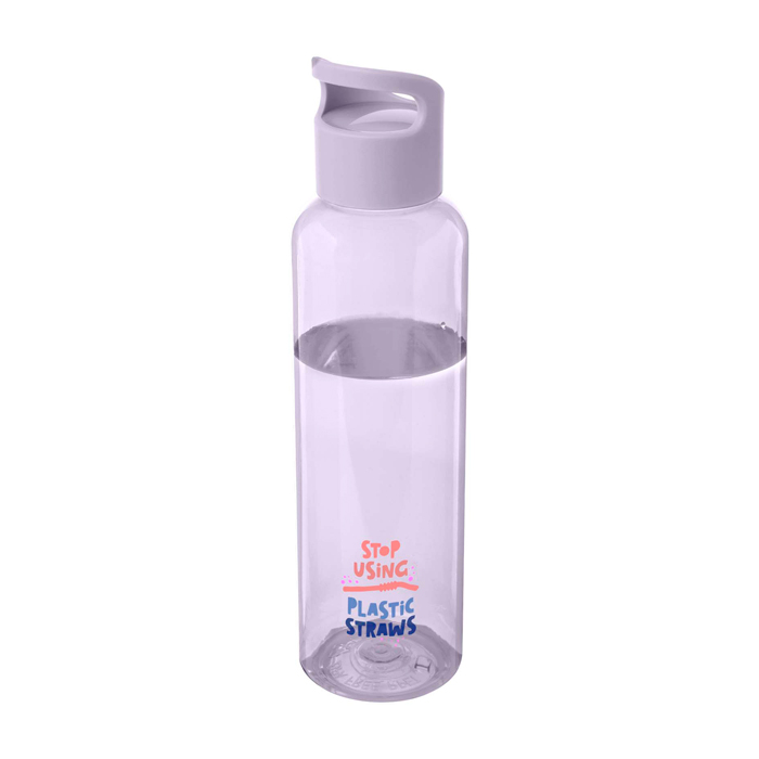 Bouteille transparente recyclée 650ml avec couvercle à poignée pratique.