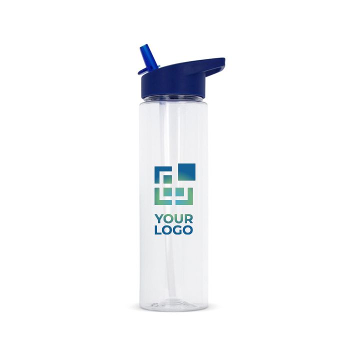 Gourde en RPET transparente avec logo et paille pliable 600ml