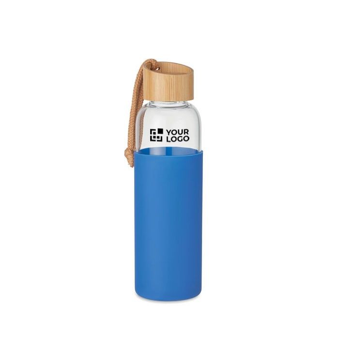 Bouteille en verre avec logo et bouchon bambou 500 ml Crystal Pouch