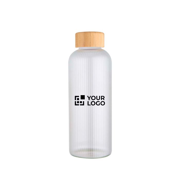 Gourde en verre borosilicaté à paroi simple, bouchon en bambou 650 ml