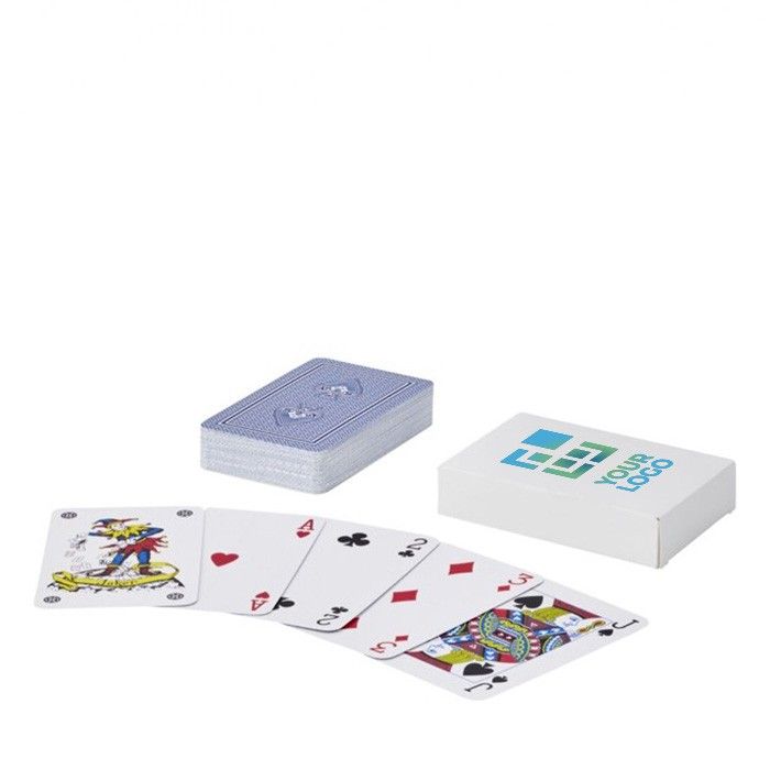- Jeu de cartes complet (54 cartes + 2 jokers), format compact facile à transporter.
