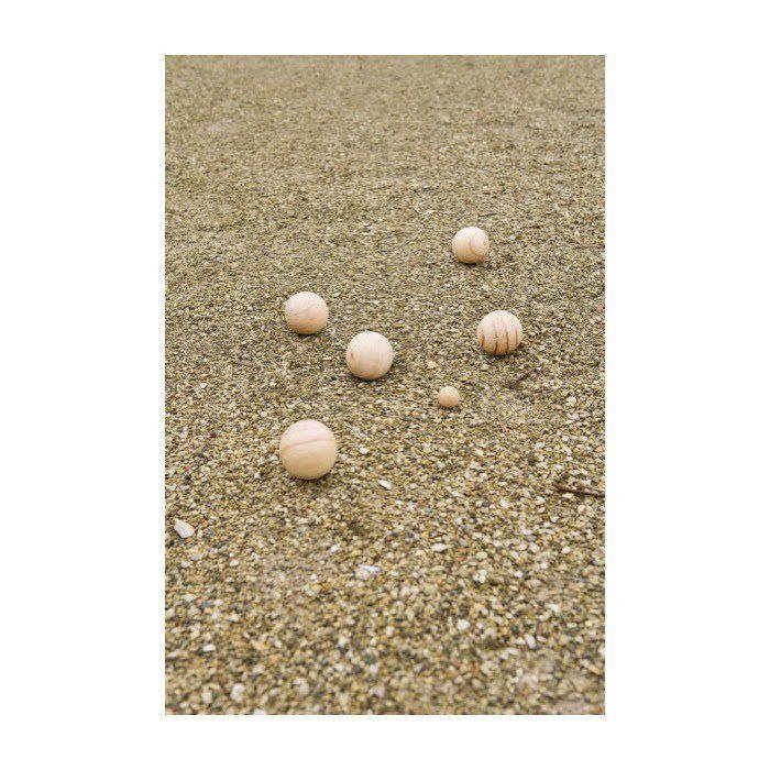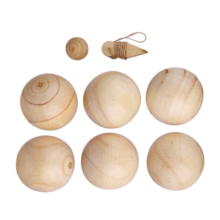 Ensemble de jeu de boules en bois pour 4 à 6 joueurs, comprt 6 boules d'un diamètre de 7 cm et 1 de 2 cm livré avec une corde, dans une pochette en coton.
