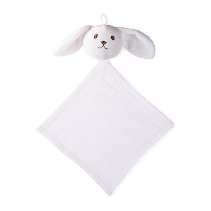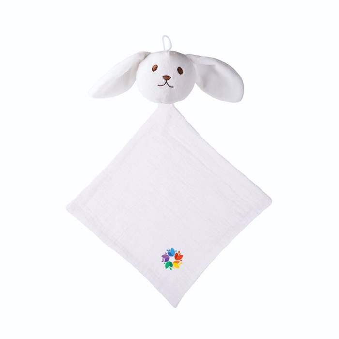 Doudou en gaze de coton 240 g/m² au toucher doux, conçu pour apporter du bien-être au bébé et offrir une touche de tendresse dans les actions d'entreprise.