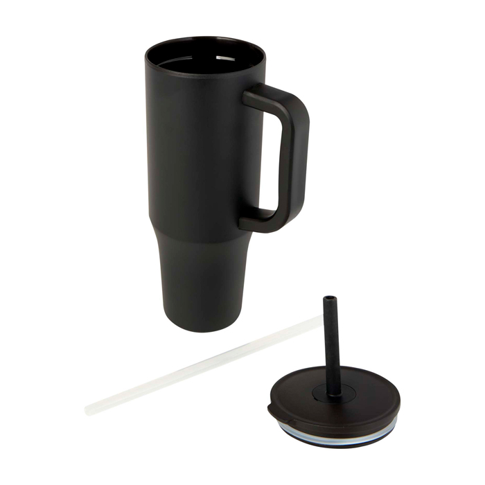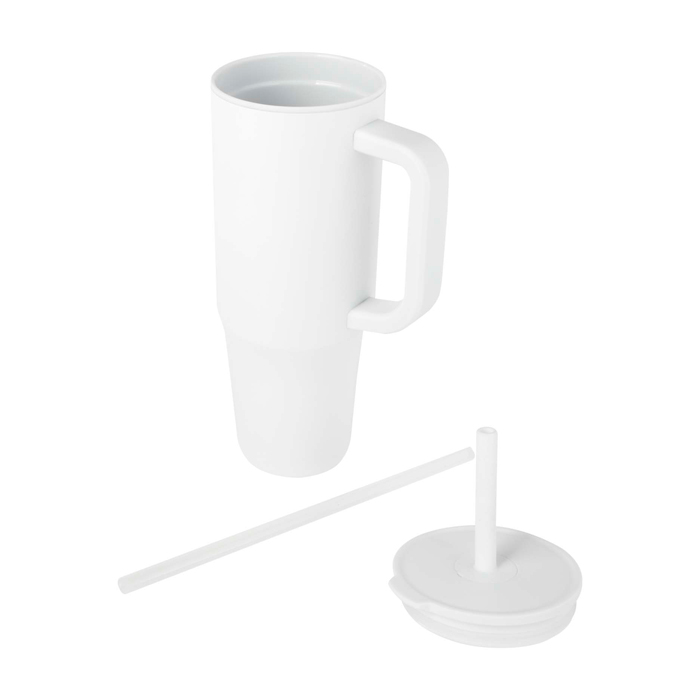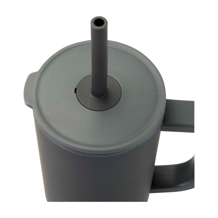 Gobelet avec paroi extérieure en acier inoxydable recyclé certifié RCS et paroi intérieure en plastique. Comprend une paille en silicone alimentaire intégrée et un bouchon à pression anti-éclaboussures pour boire confortablement. Convient aussi pour boissons chaudes, bien que l’usage avec la paille ne soit pas recommandé. Capacité : 900 ml. Lavage à la main uniquement.