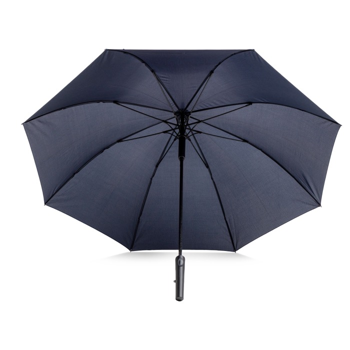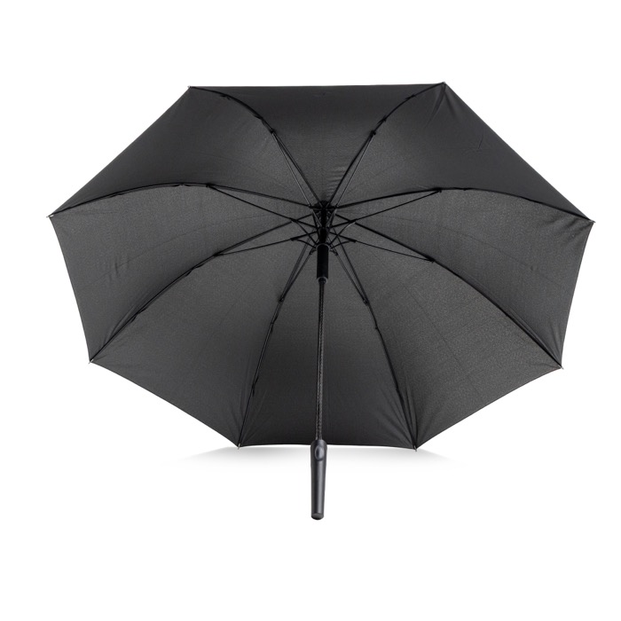 Parapluie automatique en RPET. Structure en fibre de carbone offrant légèreté et résistance, design à 8 panneaux de 120 cm de diamètre pour une large couverture par temps de pluie intense. Manche style golf pour une prise confortable et ouverture automatique pour un usage rapide et pratique. Fabriqué en RPET, matériau durable issu de plastique recyclé, combinant durabilité, style et conscience écologique.