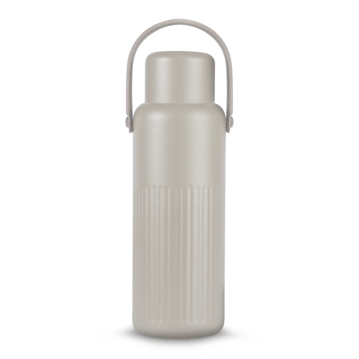 Avec un design élégant aux rayures verticales caractéristiques. Double paroi, isolation sous vide et revêtement en cuivre. Maintient les boissons chaudes 12h ou froides 24h sans condensation. Bouton-poussoir pour verser, bouchon large en forme de tasse et poignée en silicone. Compatible lave-vaisselle.
