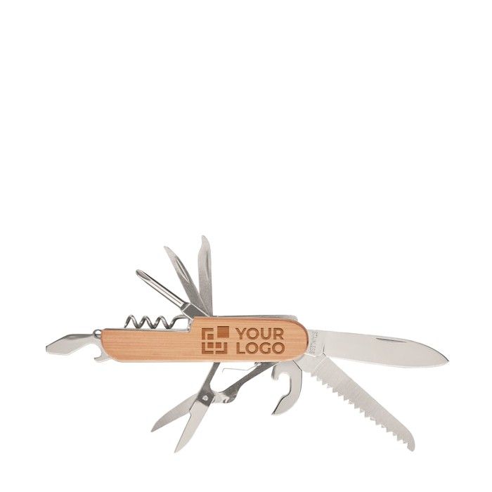 Couteau suisse personnalisé en acier et bambou à 9 fonctions Zermatt