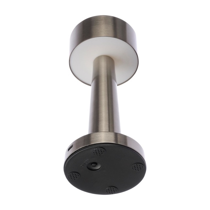 Lampe de table en métal et ABS munie de 24 LED et 3 modes d'éclairage (blanc, neutre, chaud) contrôlés par un capteur tactile, batterie de 800 mAh et câble de charge de 1 m type C, dans une boîte cadeau en kraft.